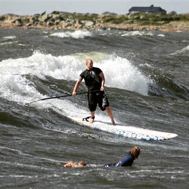 Below you can see a picture of SUP with a Kona One. The picture is from Varberg 2006, and it is Gustav Cavalli who waves SUPs.